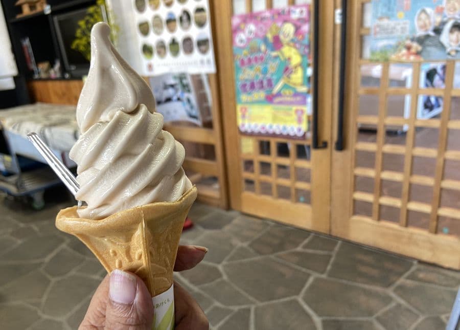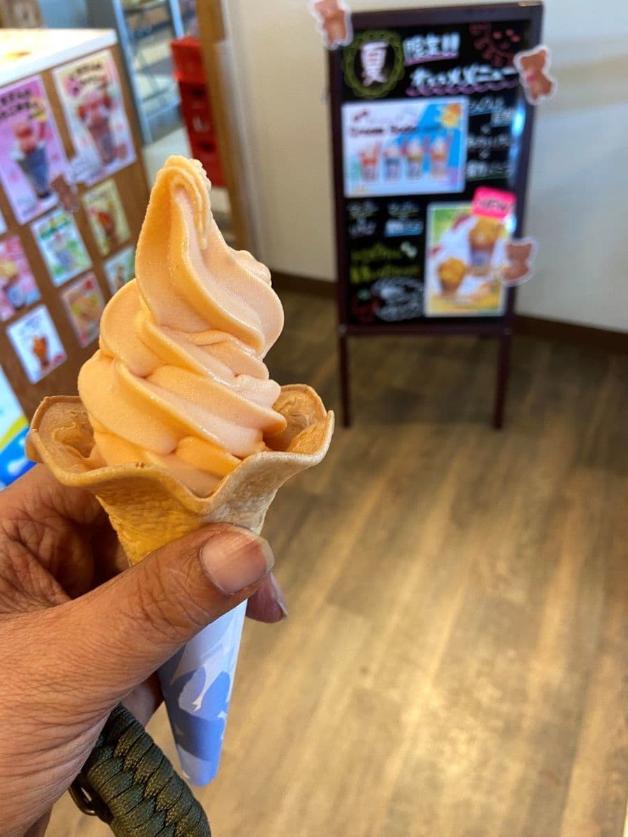 宮城県産のトマトを使ったソフトクリームをふたごの湯で入浴後にいただいちゃいました。